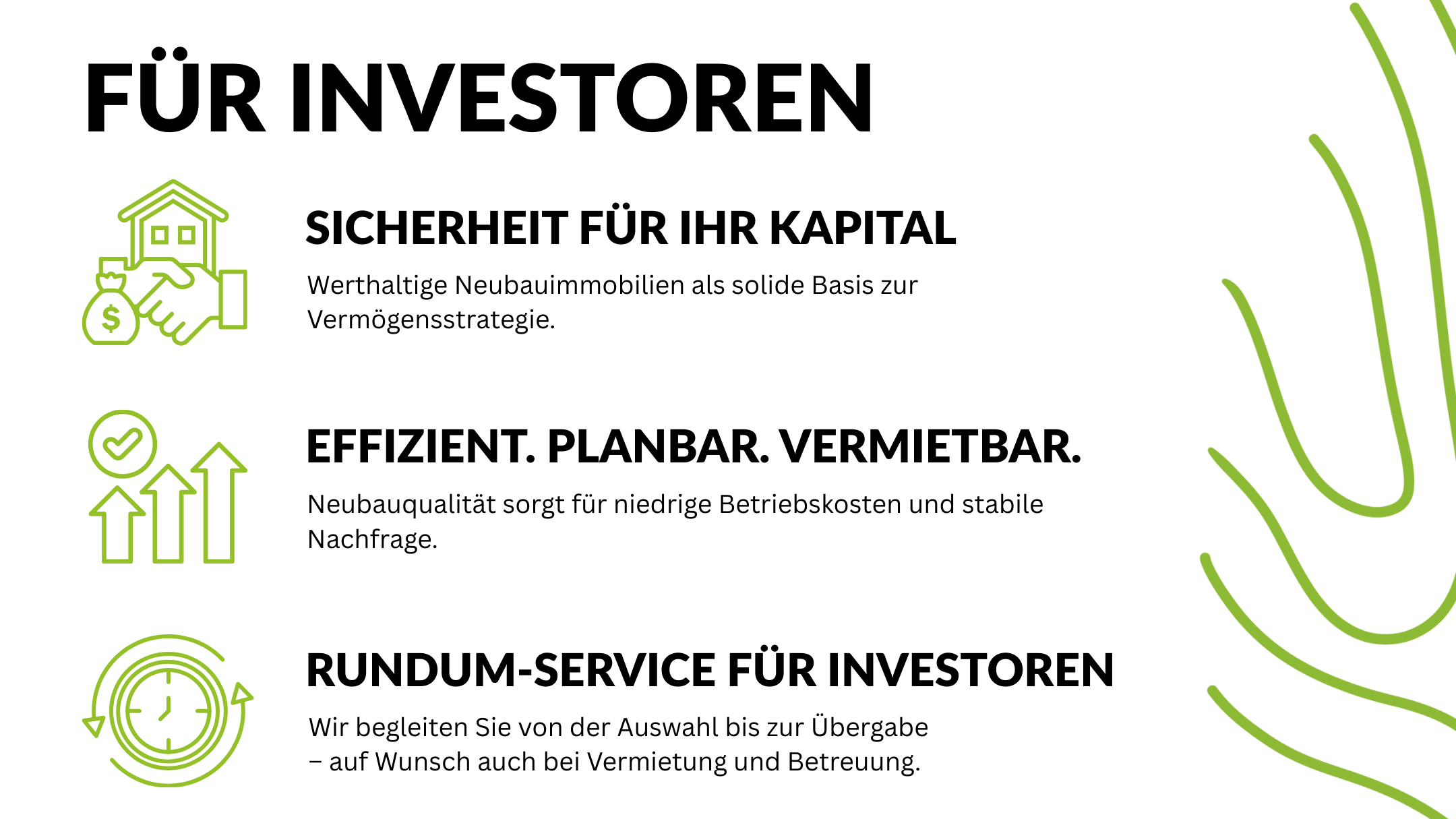 Von der Auswahl geeigneter Grundstücke über die Projektentwicklung und Architektur bis hin zur Bebauung begleiten wir den gesamten Entstehungsprozess ganzheitlich. Auch bei Vermietung, Verkauf sowie Service und Betreuung stehen wir verlässlich an der Seite unserer Kunden und Partner.